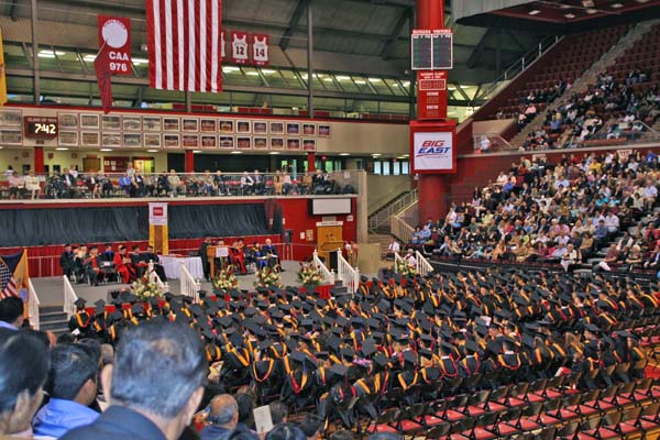 卒業式は午後7時から始まった。会場受付には警察が持ち物検査をする。これもテロの影響か?卒業生はみんな、未来に向けて希望に輝いている。一人ひとり名前が呼び上げられ、そのたびに家族や友人が歓声をあげる。中には鳴り物も入り、何とも陽気な卒業式です。それにしても、来賓のあいさつが長いのは、どこの国も同じなのか、睡魔とのたたかいに一苦労でした。