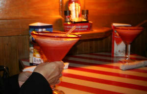 卒業式後に立ち寄った本場ファミレスでは、頼んだマルガリータの巨大さにびっくり!! ステーキもビッグサイズ。さすがアメリカン(当然ですが)。