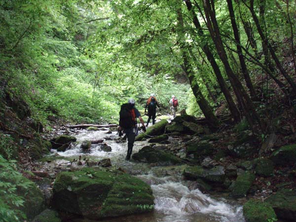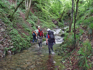緑が美しい沢を行く